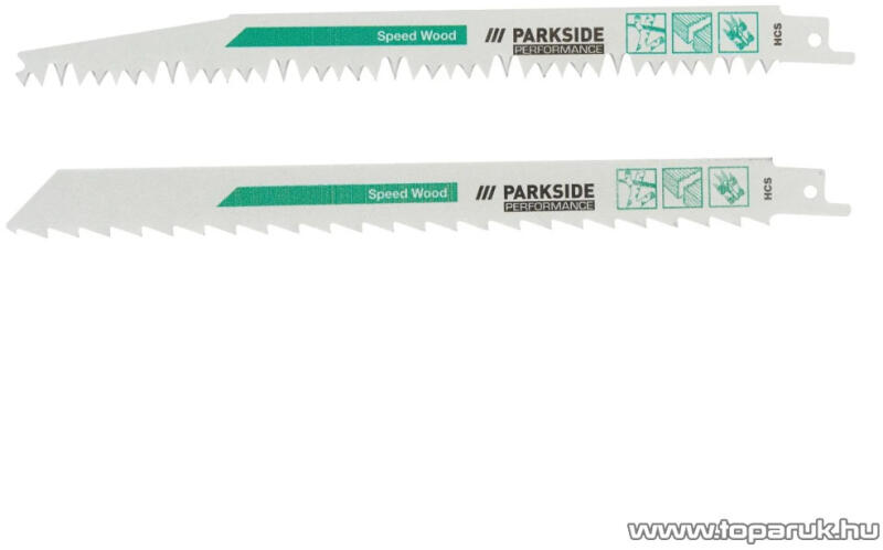 - Green Wood - "Zöldvágó" készlet, fához és zöld fához - Gyári ParkSide fűrészlap - Swiss Made - kiváló vágásminőség - Alkalmas bármely szabványos orrfűrészhez / kardfűrészhez 12,7 mm univerzális (1/2") rögzítéssel - 2 db fűrészlap / csomag Fához és nyersfához ideális: - 2 optimalizált HCS-fürészlap - kiváló vágásminöség - 228,5 mm-es lap (3 TPI): túzifa