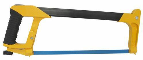 Fémkeretes fémfűrész, edzett fogú fűrészlappal. Puha fogantyúval.