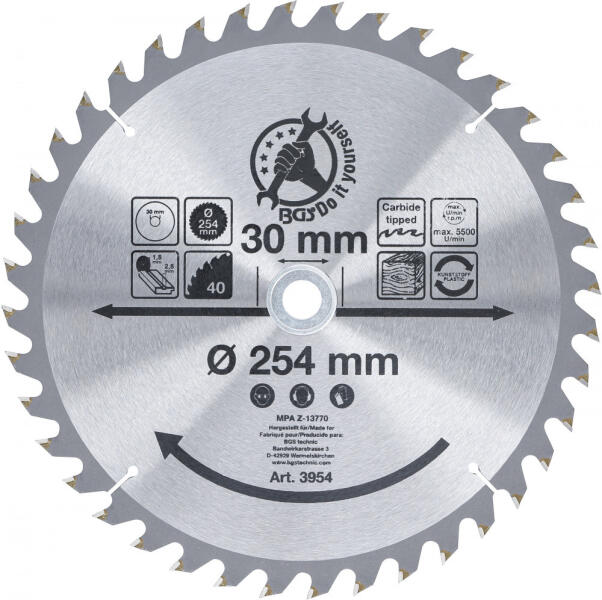Mpa Által Tanúsított Furatadapter 30 Mm-Ről 25 Mm-Re Keményfém Fogak Furatátmérő: 30 Mm Bruttó Súly: 740 G Fordulatszám Max. : 5500 Ford/Min Átmérő: 254 Mm Vágásszélesség: 2,8 Mm Fűrészlap-Vastagság: 1,8 Mm Falikárpithoz Alkalmas Csomagolás: Igen Fogak: 40