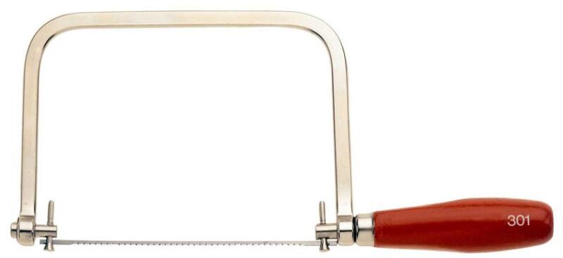 Finom precíziós munkákhoz, fa és műanyag vágására. Nikkelezett acél keret. Narancsszínűre lakkozott bükkfa nyél. Cserélhető lap tartótüskéken, 360°-ban elforgatható. A penge edzett és hőkezelt szénacél, köszörült és hajtogatott fogakkal, 14 fog/inch fogosztással. . Nickel-plated steel frame Orange-lacquered, wooden beech handle Interchangeable blade fitted on retaining