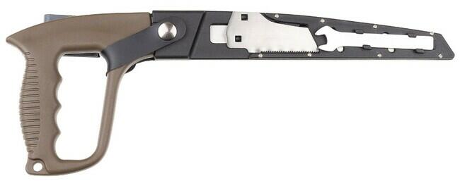 Kézi fűrész, 2 fűrészlap, hüvely övcsipesszelgonomikusan formázott műanyag fogantyú fűzőlyukkal1 fűrészlap durva fogazással kb. 20 cm1 fűrészlap finom fogazással kb. 16 cmélezett és edzett fogakcsak 2 csavarral cserélhetőkulcs, második fűrészlap, biztonsági heveder és állítható övcsipesz a
