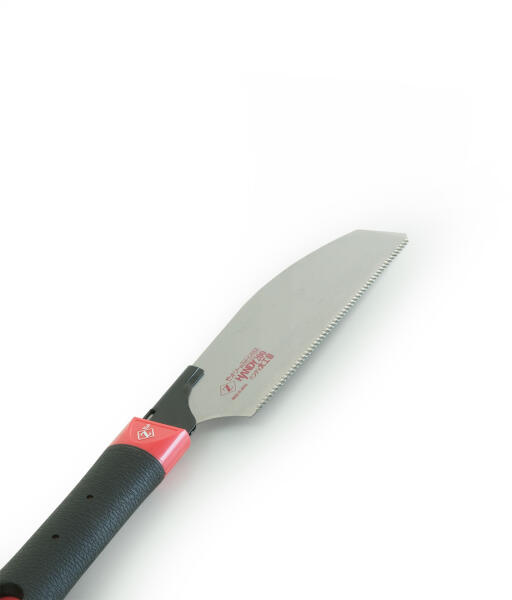 Kataba típusú japánfűrész a ZETSAW gyártótól. Univerzális, minden típusú és irányú vágáshoz alkalmas. Ideális fa, rétegelt lemez és forgácslap vágására. Markolata csúszásmentes gumival borított. Fűrészfogai impulzusedzettek a keménységük növelése érdekében. Cserélhető pengéje korrózió- és gyantagátló olajjal kezelt. A penge hossza 200 mm, vastagsága 0,5