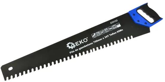 Kézi fűrész pórusbetonhoz lehetővé teszi az építési munkák hatékony elvégzését. 65Mn mangánacélból készült , teflonréteggel bevonva. A fűrész 700 mm-es munkahosszal rendelkezik, és 34 keményfém foggal van ellátva. Emellett ABS markolattal is fel van szerelve, amely kényelmet biztosít a munka során. Műszaki adatok: Anyaga: 65Mn mangánacél Markolat: ABS műanyag Munka