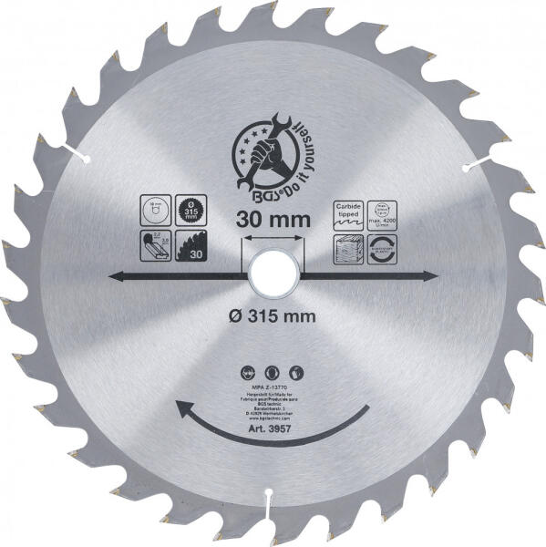 Mpa Által Tanúsított Keményfém Fogak Furatátmérő: 30 Mm Bruttó Súly: 1300 G Fordulatszám Max. : 4200 Ford/Min Átmérő: 315 Mm Vágásszélesség: 3,0 Mm Fűrészlap-Vastagság: 2,2 Mm Falikárpithoz Alkalmas Csomagolás: Igen Fogak: 30