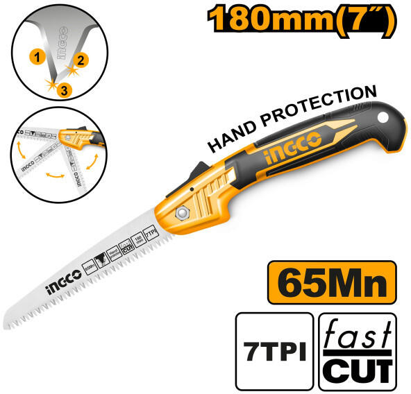 Méret: 180 mm (7")Anyaga: 65MnFogosztás: 7TPI3 élű fogkialakításGyors vágásÖsszecsukható Szállítási terjedelem: 1 db ágfűrész, Bliszterben