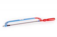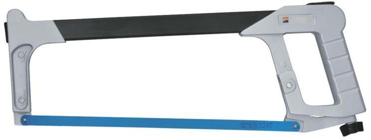 A kézi fémfűrész keret 300 mm-es fűrészlappal felszerelt. Az ergonomikusan kialakított, kézbesimuló fafogantyú segítségével kényelmes és gyors a munkavégzés. A kézi fémfűrész fűrészlapj ának cseréje egyszerű és gyors, a fafogantyú eltekerésével lazítható meg a lapfeszítő. A kézi fémfűrész széles körben felhasználható nemcsak a profi műhelyekben, hanem