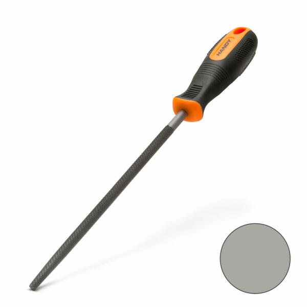 Minőségi, 200 mm hosszú, gumírozott nyelű reszelő. Kör alakú, edzett, egyszeres metszésű reszelő résszel, amely kiválóan használható faanyagokhoz és fémekhez. Az ergonómikus gumírozott nyél biztosítja a kényelmes fogást és a biztonságot a munkavégzés során. Tökéletes választás, ha éles sarkokat, vágáséleket kell reszelni. Egyszeres metszés Közepes durvaság T