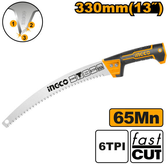Méret: 330 mm (13")Anyaga: 65MnFogosztás: 6TPI3 élű fogkialakításGyors vágás Szállítási terjedelem: 1 db ágfűrész, Bliszterben