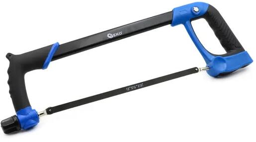 300 mm-es fémvágó keretes fűrész, állítható szögben: 0, 45 és 90 fok. Csúszásmentes, puha gumival borított markolat. A fűrészlap feszítése lehetővé teszi a megfelelő feszültség beállítását. Akár 100 mm átmérőjű tárgyak vágására is alkalmas. A termék jellemzői A fűrész ergonomikus, műanyagból készült markolattal rendelkezik A keretben fűrészlap tároló