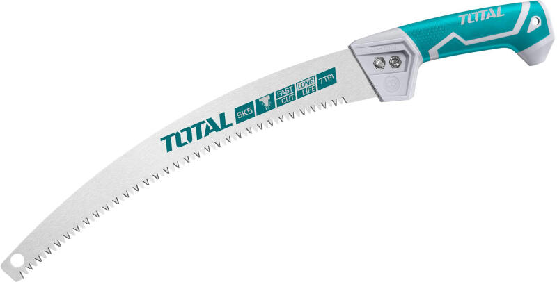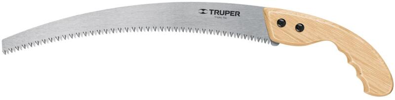 Hajlított penge a gyors vágáshoz, kopásálló SK5 acélból. 3 élű fogak a kereskedelmi fogaknál gyorsabb vágáshoz. Fa fogantyú, ergonomikus. Penge hossz: 35 cm. Teljes hossz: 53 cm.