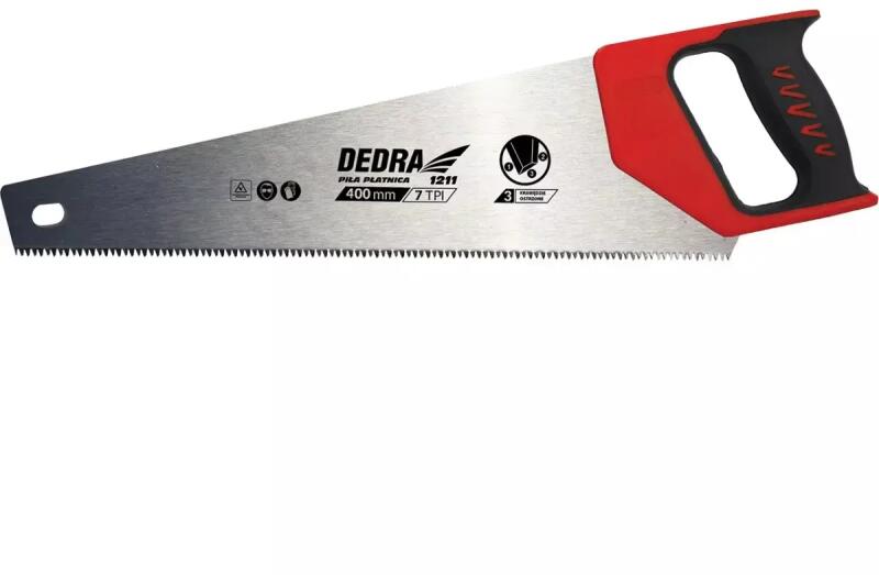Ezt a fűrészlapot kézi fakivágásra tervezték. A penge három oldalán edzett fogakkal rendelkezik a gyorsabb és hatékonyabb vágás érdekében. A fogantyú kontúros és gumírozott a kényelem érdekében. Munkahossz 400 mm. Műszaki adatok3oldalrólélezett fogak Keményített fogak 7 TPI, 7 fog per inchDupla anyagú, kontúrozott fogantyúHossz400 mm