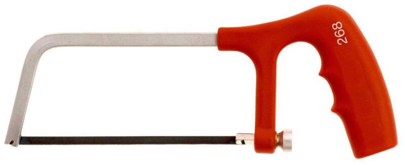 Mini fűrészkeret tömör acél profillal. A keret króm kivitelben és üvegszálas nyéllel felszerelve a kényelmes fogás érdekében. Praktikus és egyszerű lapfeszítő csavar. Egy db 6" (150 mm), 32 fog/inch osztású lappal felszerelve, fémekhez ajánlott. Fibreglass reinforced handle for comfortable grip Practical and simple blade tensioning device Complete with 150 mm (6'') 32 TPI met