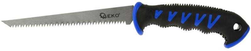 Kézi fűrész gipszkartonhoz 150mm Kézi fűrész (kés) 150 mm-es pengehosszal gipszkarton vágásához. A fogantyú ergonomikusan formált a jobb fogás érdekében, műanyagból készült, gumibevonattal rendelkezik. Technikai paraméterek:Vágórész hossza: 150 mm Fogak anyaga: Mangán-acél Súly: 0,19 kg