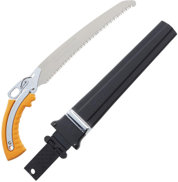 Silky Saw Gunfighter 300-8.5-6 Görbe metszőfűrész (KSI673030) tulajdonságai: -Fogazat: Nagy (8.5-6/30) fog/mm -Anyag: Hiteles prémium Japán acél -Súly: 460 g -Bevonat: Nikkel -Méret: 470×140×35 mm -Penge hossza: 300 mm -Sugár: 1300 -Alkalmazás: Friss fához -Bevágási mélység (mm): 1.4 mm -Szállítási súly: 0,506 kg