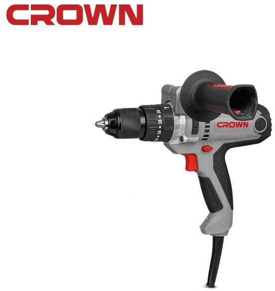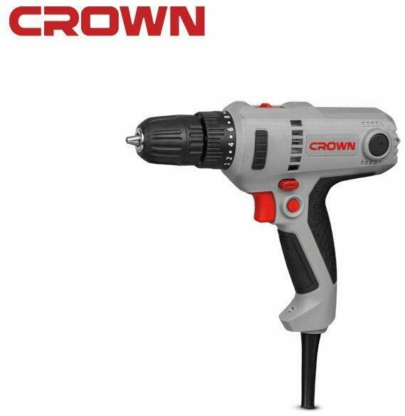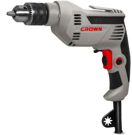 CROWN CT10143-13 Fúrógép 550W, 1.5 - 13 mm Névleges teljesítmény: 550 W Áramerősség 220-230 V feszültségen: 2,65 A Üresjárati sebesség: 0-2800 minˉ¹ Fogazott tokmány Tokmány meghúzási tartománya: 1,5-13 mm Fúrási teljesítmény acélban: 13 mm Fúrási teljesítmény: fában 25 mm Súly: 1,42 kg