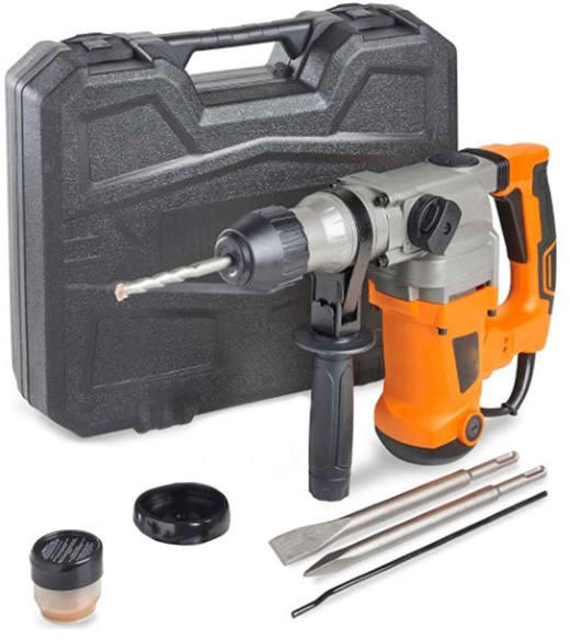 Műszaki leírás: háló zati feszültség: 220-240V / 50-60Hz teljes tmény: 2750W SDS Plus befogás Üresj árati sebesség: 500r /min tokmány mérete: 38mm Csomagsúl y: kb. 11kg védelmi osztály: II 2 mód: fúrás és vésés 1db fúrószár és 2db véső szár