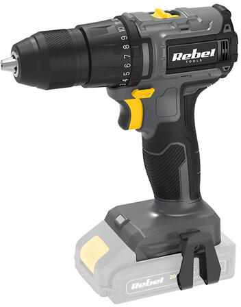 RB-1004 Rebel akkumulátoros fúró, szénkefe nélküli motorral, akkumulátor nélkül, 20V TECHNIKAI LEÍRÁS: Funkciók : csavarozás, fúrás Kefe nélküli motor Gyorsszorító fúrótokmány Orsózár Két sebesség tartomány Munka lámpa Jobbra/balra forgatás Ergonomikus fogantyú MŰSZAKI ADATOK Akkumulátor : 20V; 2 Ah (RB-2001) / 4 Ah (RB-2002), Li-Ion* Töltési idő: 1-1,5 óra (RB-