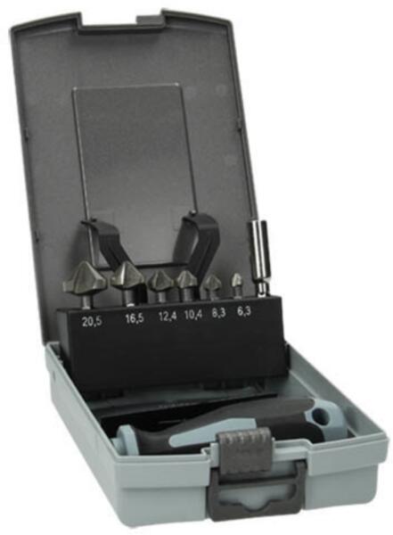 Kúpos süllyesztő készlet Fémre 1/4" bitbefogás Műanyag tartó doboz A Hikoki süllyesztőket 100% -ban meghatározott vágási geometriával tervezték és gyártották: a kombinált tengelyirányú / radiális dombornyomás, a vágóél professzionális vágási szöge csak az 5 tengelyes csiszolási technológiánkkal állítható elő! Ez biztosítja az egyenletes horony nélküli sülly
