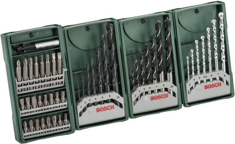 Barkácsolás Bosch minőséggel: Fúrás és csavarozás könnyedén. Gyakorlatilag minden feladathoz ideális: Ez a kiváló minőségű alapfelszerelés pontos fúrást és csavarozást tesz lehetővé kőzetben, fában és fémben, és lefedi a barkácsolás során előforduló leggyakoribb alkalmazásokat. 7-7 db fa-, kőzet- és fémfúró. A minden szokásos csavartípushoz és -mérethez h