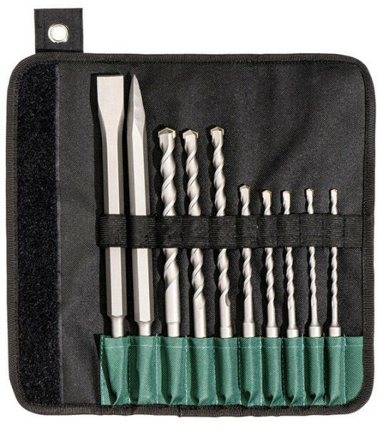 Jellemzők: - SDS-plus fúró kiváló minősegű keményfém fúróheggyel - Dinamikus, véső alakú fúrófej - Nagy volumenű S-spirálgeometria a fúrt törmelék gyors elszállításához - Jó fúróteljesítmény hosszú élettartam mellett - Betonban, falazatban, terméskövekben alkalmazható - Vászon tokban - átmérő: 5, 5,5, 6, 7, 8, H=160 mm / átmérő: 10, 12, 14 mm, H=210 mm / h