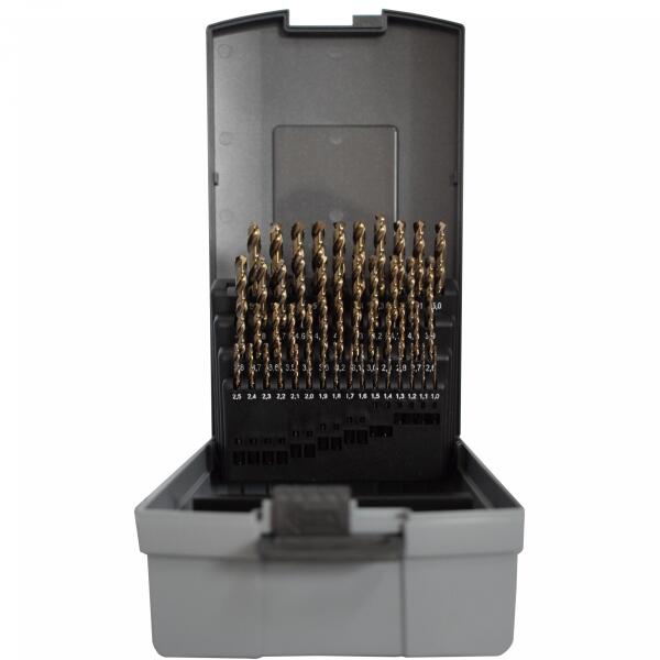 ABRABORO HSS-Co 50 részes fémfúró készlet D1,0-5,9x0,1mm DIN338 az iSzerszámnál. Rövid kivitelű, fém csigafúró készlet 5% kobalt (Co) tartalmú HSS gyorsacélból. A 40°-os, Helix spirálnak köszönhetően kiemelkedő forgácseltávolítás érhető el, nyugodt, pontos, ugyanakkor gyors fúrás mellett. A speciális 135°-os Split Point önközpontosító fúrócsúcs rendkívül ti