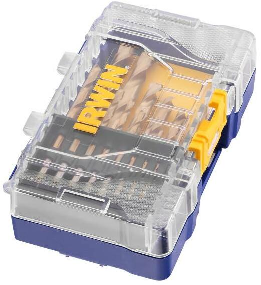 IRWIN Csigafúró készlet 15 részes TiN hengeres (1,5-10 mm) Gyors és precíz 135° OSZTOTT FEJbiztosítja a tökéletes központosítást és a fúrási nyomás csökkentésétKÖSZÖRÜLT FORGÁCSHORONYipari minőségű köszörült forgácshorony a nagy pontosságú fúrás és a gyors forgácseltávolítás érdekébenTITÁNIUM-NITRID BEVONAT Afúrószár teste kiváló minőségű HSS acé
