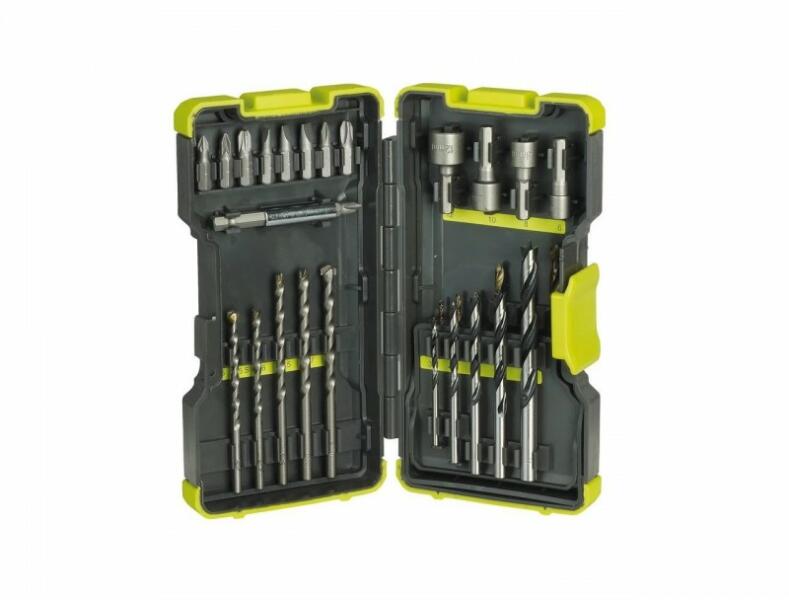 Ryobi bit szett, 30db vegyes RAK30MIX Ryobi 30 db-os vegyes bit készlet RAK30MIX: Tartalom: 9 x 25 mm csavarozó bit (3 x Philips PH1-PH3, 3 x Pozidrive PZ1-PZ3, 3 x slotted 4-6mm) 1 x 60 mm mágneses bittartó 4 x nem mágneses dugókulcs (1 x 6mm, 1 x 8mm, 1 x 10mm, 1 x 12mm) 5 x fafúró központosító csúccsal (1 x 3mm, 1 x 4mm, 1 x 5mm, 1 x 6mm, 1 x 8mm) 6 x HSS fúró bit (1 x 2mm, 1 x 2.