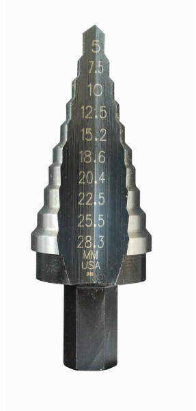 IRWIN lépcsős fúró PG29M10 Furatméretek 5 / 7,5 / 10 / 12,5 / 15,2 / 18,6 / 20,4 / 22,5 / 25,5 / 28,3 mm ÖNKÖZPONTOSÍTÓ CSÚCS - Nincs kilengés, nincs szükség központosításra. FÚRÓSZÁRTEST - Króm-vanádium acélból készült. Keménység: 56 HRC FORGÁCSHORONY - Extra mély köszörült dupla forgácshorony az extra forgácsolási kapacitás érdekében. Ideális vékony anyago