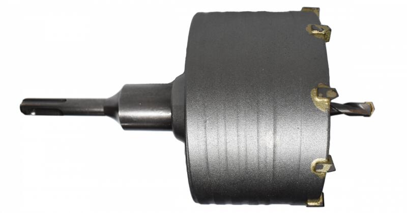 Stabil koronafúró, keményfémlapkával, beton és falazat megmunkálásához. Használja SDS Plus adapterrel és központfúróval. D (átmérő) = 100 mm L (hossz) = 50 mm HM fogak száma: 6