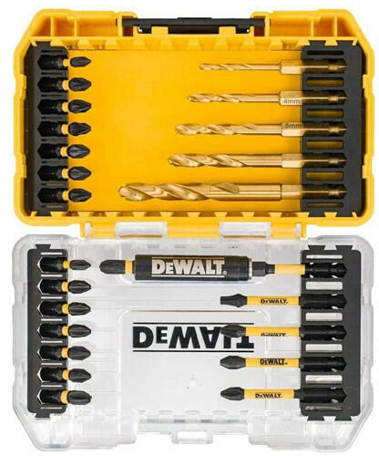 DEWALT DT7612-XJ Gyorscserélő komplett készlet - 9 db-os Jellemzők: Teljes fúró-süllyesztő csavarrendszer Egykezesen kezelhető elzárórendszer a fúró- és csavarozó alkalmazás közötti gyors váltáshoz Masszív, 8 mm-es szár a nagyobb stabilitáshoz A lkalmazás: Kemé ny- és puhafában, valamint faszerkezeti anyagokban használatra Ideális bútorgyártásban beltéri építész