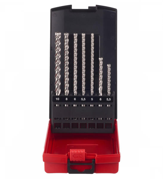 Milwaukee SDS-Plus MX4 fúrószár készlet (7 részes, kicsi) Jellemzők: Szimmetrikus 4 vágóél geometria (4 x 90°). Tökéletes kerek furatok az optimális rögzítés érdekében. A 4 spirálos horony kialakítás biztosítja a por és törmelék optimális eltávolítását. Központosító hegy- könnyed, precíz pontfúrást tesz lehetővé. A tömör keményfém fúrófej, hegesztve van