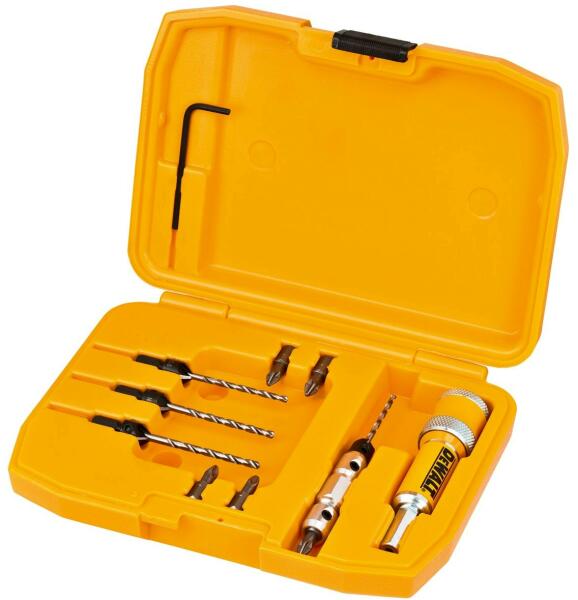 DEWALT DT7600-XJ Csatlakozó, süllyesztőfúró, előfúró és Pz2-es csavarozóbetét - 6-os Komplett fúrócsavarozó tartozék rendszer 1 műveletben süllyesztő és vezető furatok fúrásához és csavarozáshoz Egykezes csatlakozó működtetés előretolható gyűrűvel, könnyű átállni fúrási munkáról csavarozási munkára és fordítva 8 mm-es szár, hosszú élettartam