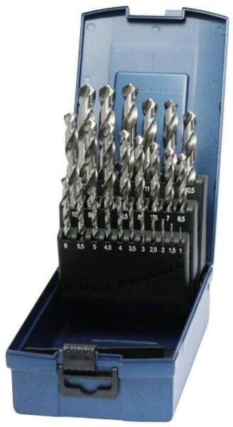 Bohrcraft HSS-G fúrókészlet adatai HSS-G acélból 25 db-os 1 - 13 mm 0,5 mm-es lépcsőkben ABS műanyag dobozban Bohrcraft HSS-G fémfúró jellemzői Bohrcraft Német HSS-G DIN 338 szerint gyártott gyorsacél fúró hengeres szárral. A HSS-G fém csigafúró teljes edzésű nagy teljesítményű gyorsacélból, N típusú jobbra vágó, 118°-os fúrócsúccsal, haránt-köszörülve DIN 1