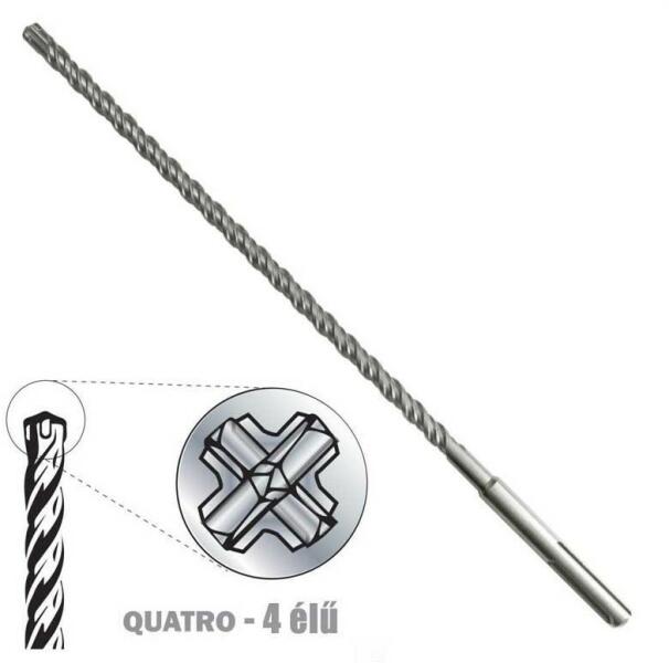 Dedra betonfúró 4 vídiás éllel; Befogás: SDS-MAX; Átmérő: 25 mm; Teljes hossz: 570 mm; Dolgozó hossz: 430 mm