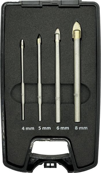 Fúrószár speciális formájú keményfém lappal. Után-élezhető. Ajánlott : üveg, csempe, kerámia, tükör és porcelán fúrásához Használata: alacsony fordulatszám-tartományban, megfelelő hűtéssel Méretek: Ø 4, 5, 6, 8 mm