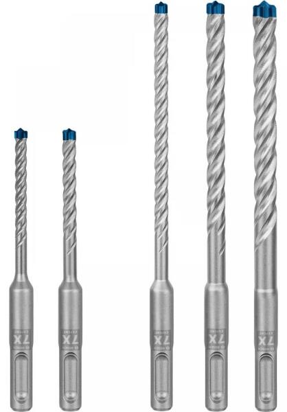 Akár 3x tovább tart, mint a Bosch SDS plus-3 fúrószár - A vasbeton átfúrása nehéz munka, és hagyományosan a kalapácsfúrót is megviseliA hagyományos kétélű fúrószárak elakadnak a betonacélban, és végül eltörnekAz EXPERT SDS plus-7X tömör keményfém feje egy továbbfejlesztett 4 élű kialakítás, amely a legkeményebb fém egyetlen darabjából készült: Nem akad el,