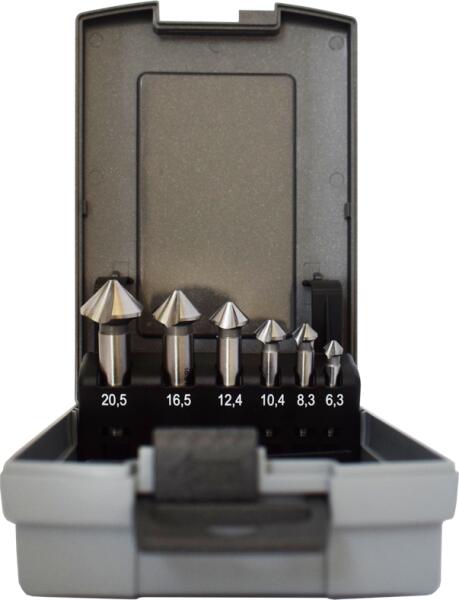 ABRABORO HSS-Co kúpos süllyesztő készlet 6 részes 6,3-20,5mm DIN335 az iSzerszámnál. Professzionális, ipari minőségű ABRABORO HSS-TiN kúpos süllyesztő készlet 6 részes. CBN köszörülési eljárással 5% kobaltot tartalmazó HSS gyorsacélból készült. Tartalma: 1,5 - 6,3 mm 2,0 - 8,3 mm 2,5 - 10,4 mm 2,8 - 12,4 mm 3,2 - 16,5 mm 3,5 - 20,5 mm Ajánlott: szinte minden anyaghoz, k