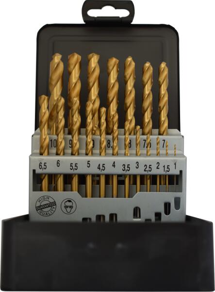 ABRABORO HSS-TIN fémcsigafúró készlet 19 db (1-10x0,5mm) DIN338 az iSzerszámnál. Professzionális, ipari minőségű 19 részes ABRABORO HSS-GS TiN titán rövid hengeres szárú fémcsigafúró készlet. Köszörült ipari minőségű fúrók nagy teljesítményű HSS gyorsacélból, titán-nitrid bevonattal. Önközpontosító, N típusú, 135°-os Split point fúrócsúcs. Átmérőtűré