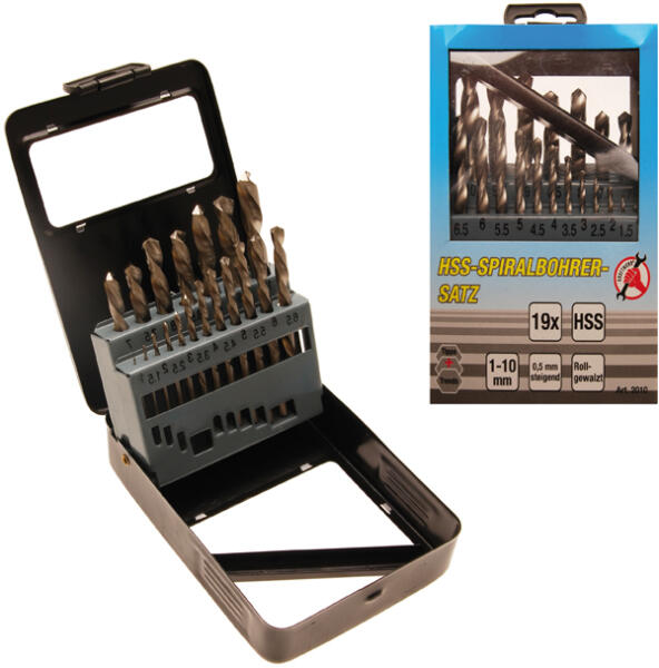 Leírás fémtáskában Szállítási terjedelem: HSS spirálfúró készlet Ø 1 mm HSS spirálfúró készlet Ø 1,5 mm HSS spirálfúró készlet Ø 2 mm HSS spirálfúró készlet Ø 2,5 mm HSS spirálfúró készlet Ø 3 mm HSS spirálfúró készlet Ø 3,5 mm HSS spirálfúró készlet Ø 4 mm HSS spirálfúró készlet Ø 4,5 mm HSS spirálfúró készlet Ø 5 mm HSS spirálfúró készlet