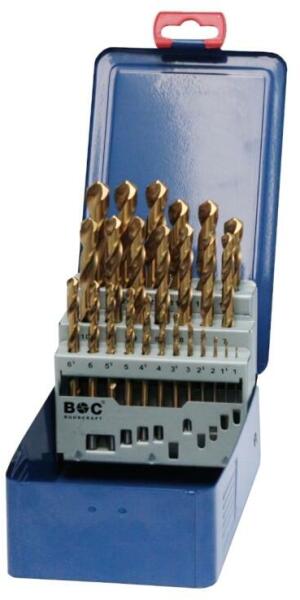 BOHRCRAFT csigafúró készlet HSS-TiN 1-13/0,5mm 25 részes DIN338 az iSzerszámnál. Professzionális, ipari minőségű köszörült BOHRCRAFT csigafúró készlet TiN bevonatú gyorsacélból (HSS-TiN). 1,0-13,0/0,5 mm = A fúrószárak átmérőjének mérete 0,5 mm-es lépésekkel nő 1,0 mm és 13,0 mm között. Használata ajánlott: ötvözött és ötvözetlen acélhoz 1100 N/mm2 szakít
