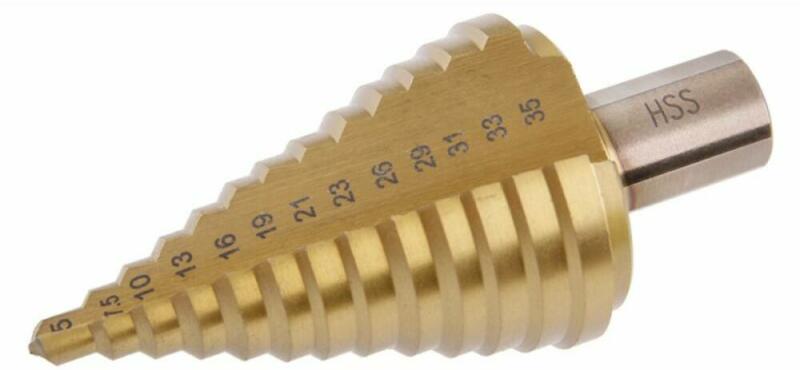 Lépcsős fúró Ha fontos a pontos és igényes furatkészítés vékony acél-, vagy színesfém lemezekben, akkor a titán-nitrit bevonattal készült HSS fúrószár lesz a Te terméked! 5-35 mm-ig lehetséges vele a sorjamentes és esztétikus furatkészítés. Gyere, és nézz szét további jobbnál-jobb termékeink között is! 5-35mm lépcsős fúró titán-nitrit bevonattal HSS A léptet