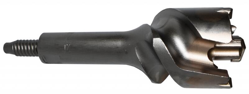 Az SDS max-9 BreakThrough fúrószár a standard választás nagy átmérőjű és mély furatok betonba fúrásához. 3 vágóélű, keményforrasztással rögzített, finomszemcsés, edzett keményfém csúcsa gyors munkát és nagy anyagdarabok leválasztását tesz lehetővé. A fúró hosszú, kúpos befogószára áttörésre is alkalmassá teszi, míg 2 hornyos, U alakú kivitele jó porelt