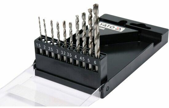 Típus: Fúrókészlet fémhez Darabszám: 10 darab Anyag: HSS 6542 (gyorsacél) Átmérők: 1.5 mm, 2.0 mm, 2.5 mm, 3.0 mm, 3.5 mm, 4.0 mm, 4.5 mm, 5.0 mm, 5.5 mm, 6.0 mm Teljes hossz: 57 mm, 61 mm, 70 mm, 75 mm, 80 mm, 86 mm, 93 mm (a mérettől függően) Munkahossz: 26 mm, 31 mm, 38 mm, 43 mm, 47 mm, 52 mm, 57 mm (a mérettől függően) Szár mérete: 1/4" (6.3 mm) hatszögletű szár Felüle