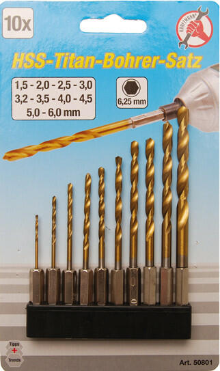 Angol nyelvű leírás (a magyar fordítást lásd lejjebb):in holderScope of delivery:HSS twist drill Ø 1.5 mmHSS twist drill Ø 2.0 mmHSS twist drill Ø 2.5 mmHSS twist drill Ø 3.0 mmHSS twist drill Ø 3.2 mmHSS twist drill Ø 3.5 mmHSS twist drill Ø 4.0 mmHSS twist drill Ø 4.5 mmHSS twist drill Ø 5.0 mmHSS twist drill Ø 6.0 mmMagyar fordítás (fordító automata segítségével):Szállí