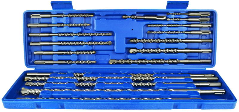 A fúró készlet tartalma: fúró SDS + 5,6, 8 / 110 fúró SDS + 6,6, 8,8, 10,10, 12 / 160 fúró SDS + 8,10, 12,14 / 210 fúró SDS + 14,16 / 260 fúró SDS + 10,18, 20 / 450 fúró SDS + 12/460