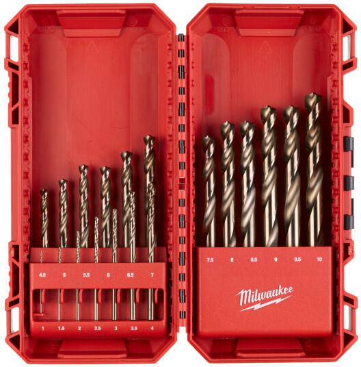 MILWAUKEE Csigafúró 9,5 x 125/81 mm HSS-G Co DIN 338 Red Cobalt ( 5 db/cs) Jellemzők Nagy teljesítményű fémfúrószár, extrém hőállóságú 5% kobalt tartalommal, HSS DIN338 szerint. Alkalmas magas ötvözettartalmú acélok és 1000 N/mm2 feletti szakítószilárdságú fémek fúrására, mint pl. rozsdamentes acél. QUAD EDGE hegy: a 135°-os csúcsszög és a négy vágóél egyedü