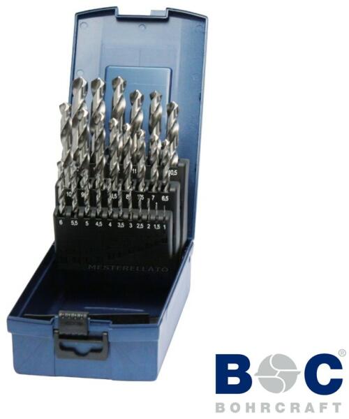HSS-G KG13 ABS-Box köszörült fémfúró készlet Hengeres befogás ABS műanyag tároló doboz DIN 338 Teljes edzésű, nagy teljesítményű gyorsacélból. 118°-os fúrócsúccsal, harántköszörült. Két vágóélű, kétspirálú, köszörült hengeres fúró, fényes felülettel. A befogószár megfelel a furatátmérőnek. Alkalmas ötvözött és ötvözetlen acélhoz, acélöntvény,