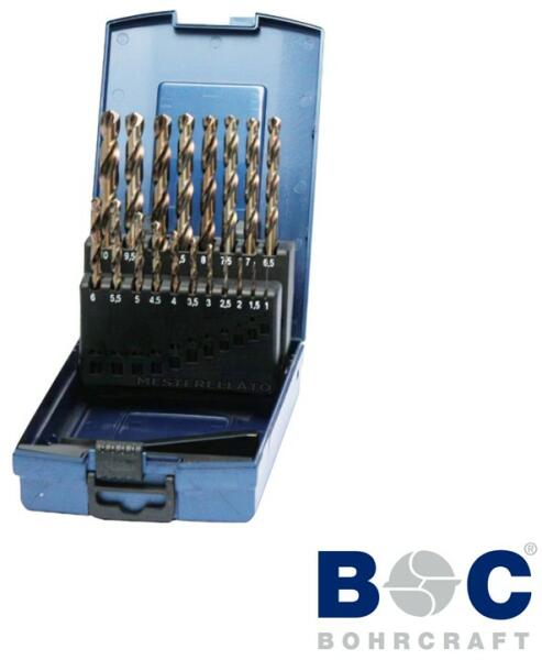 HSS-E KE10 ABS-Box fémfúró készlet (Co 5%) Hengeres befogás ABS műanyag tároló doboz DIN 338 Edzett, nagy teljesítményű gyorsacélból 5% kobalttal ötvözve 135°-os fúrócsúccsal. Görgőshengerelésű kétspirálú, két vágóélű, köszörült éllel. Spirálhorony a gyors forgácskihordás érdekében. Nagyfokú rugalmasság, csekély törésveszély, hosszú élettartam a robu