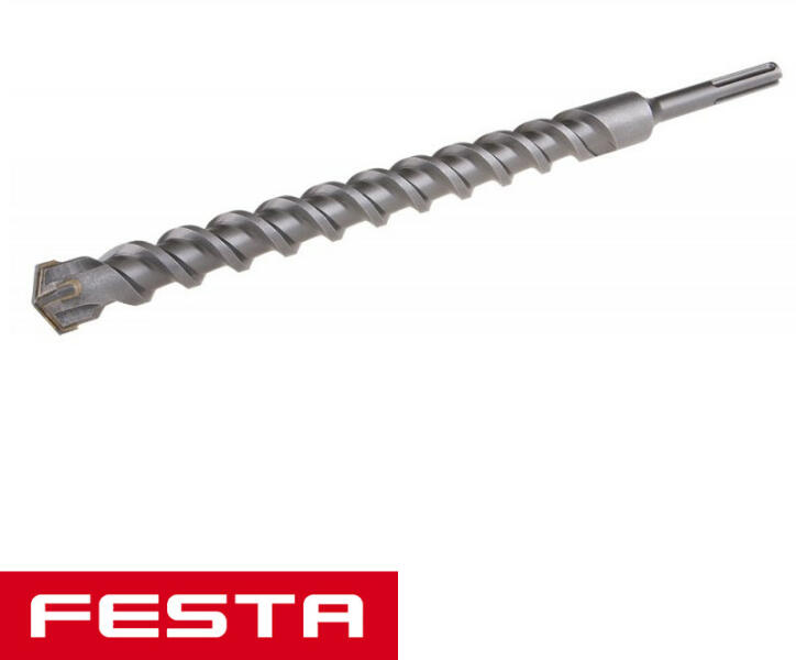 SDS-Max négyélű fúrószár 30x550 mm Kiváló minőségű négyélű fúrószár precízen elhelyezett szinterezett keményfém betétekkel (nagy keménységű), 1000 °C feletti hőmérsékleten forrasztva - a magas fúrási hőmérséklet jobb tolerálásához Használható: márvány, kő, kerámia, tégla, beton ütvefúrásához, stb. A helix forma ideális a fúrt anyag gyors eltávolít