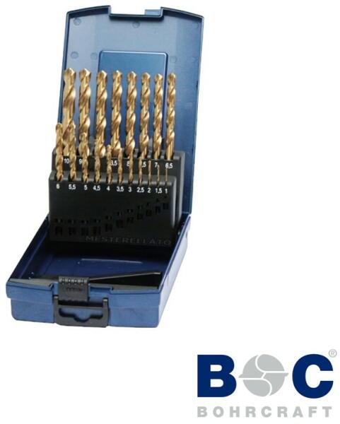 HSS-TiN KT10 ABS-Box fémfúró készlet TiN (titán-nitrid) bevonat Hengeres befogás ABS műanyag tároló doboz DIN 338 Edzett, nagy teljesítményű gyorsacélból. 118°-os fúrócsúccsal. Görgőshengerelésű kétspirálú, két vágóélű, köszörült éllel, TiN bevonattal. Spirálhorony a gyors forgácskihordás érdekében. Nagyfokú rugalmasság, csekély törésveszély, hosszú é